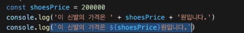 백틱을 사용하는 이유는 더 간결하게 문자열을 붙이기 가능하기 때문입니다.