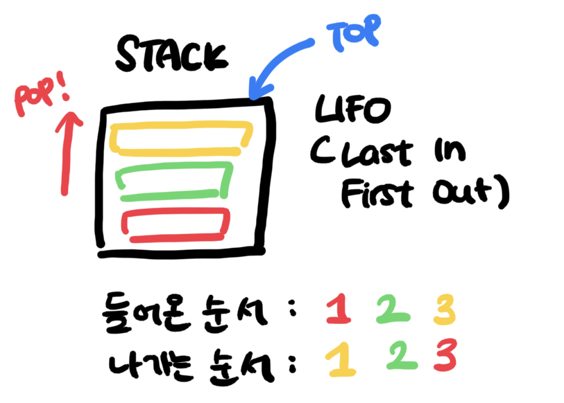 스택이란 객체가 한 방향으로 삽입되고 삭제되는 선형 데이터 구조입니다. LIFO (Last In First Out) 방식을 사용하여, 마지막으로 들어온 객체가 가장 먼저 팝 됩니다. 팝은 스택 내 객체의 삭제를 말하며, 스택에 객체를 삽입하는 것은 푸시라고 말합니다.